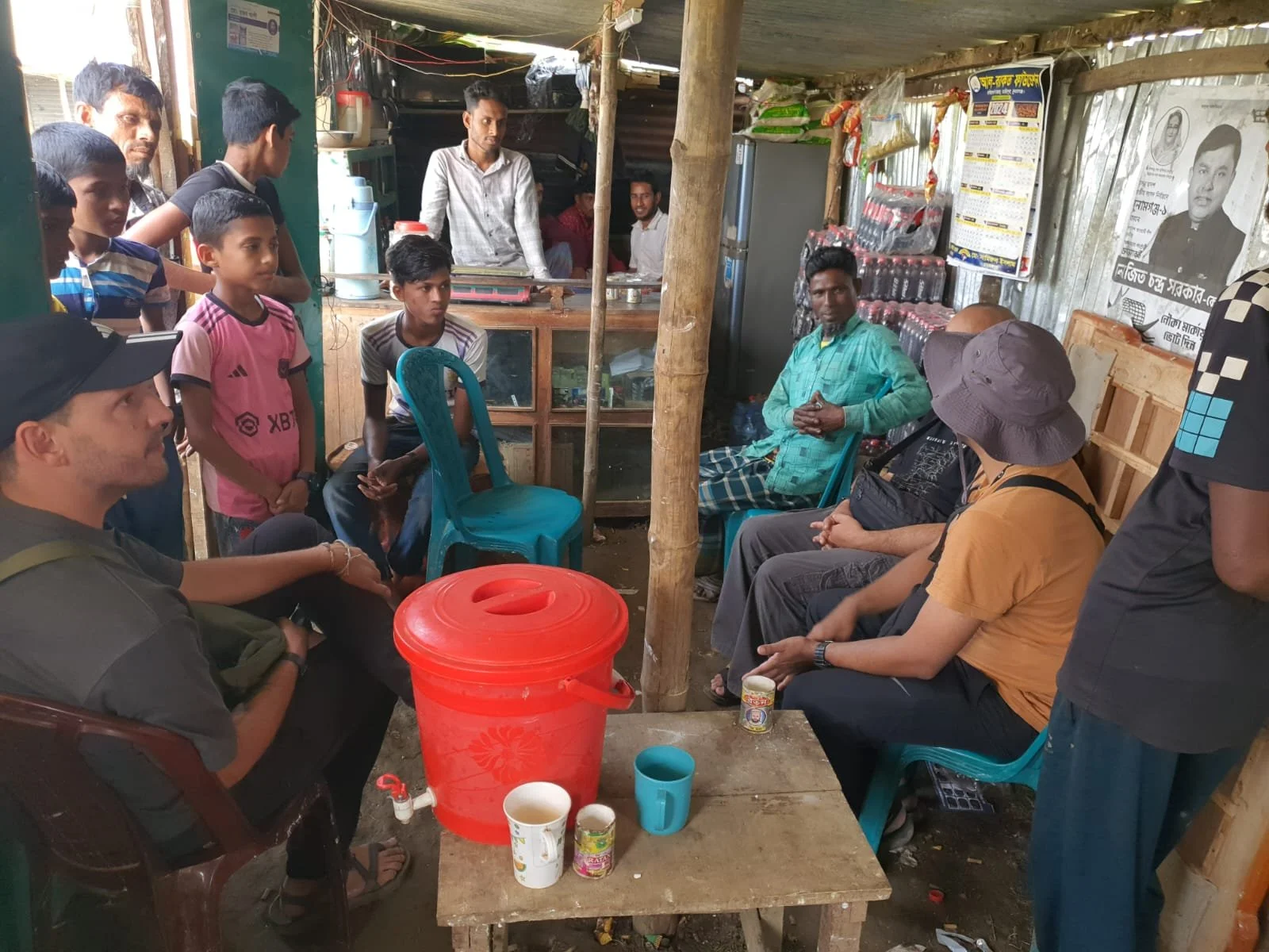 Speaking with community members at a tea stall in the Chilani village. People at this village were very enthusiastic about speaking about their daily challenges and experiences.