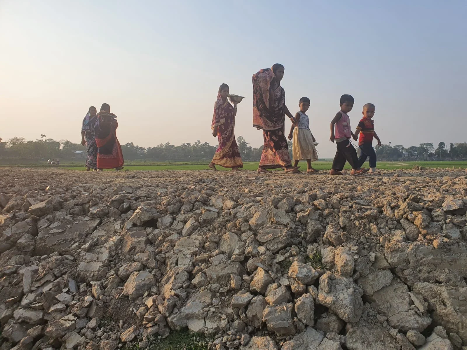 Drone shot of the Haor landscape during the peak of the dry season in February. The landscape turns into a network or rivers, canals, and isolated water bodies known as ‘beels’ during the dry season. Starting April this landscape becomes completely inundated and turns into an inland sea.