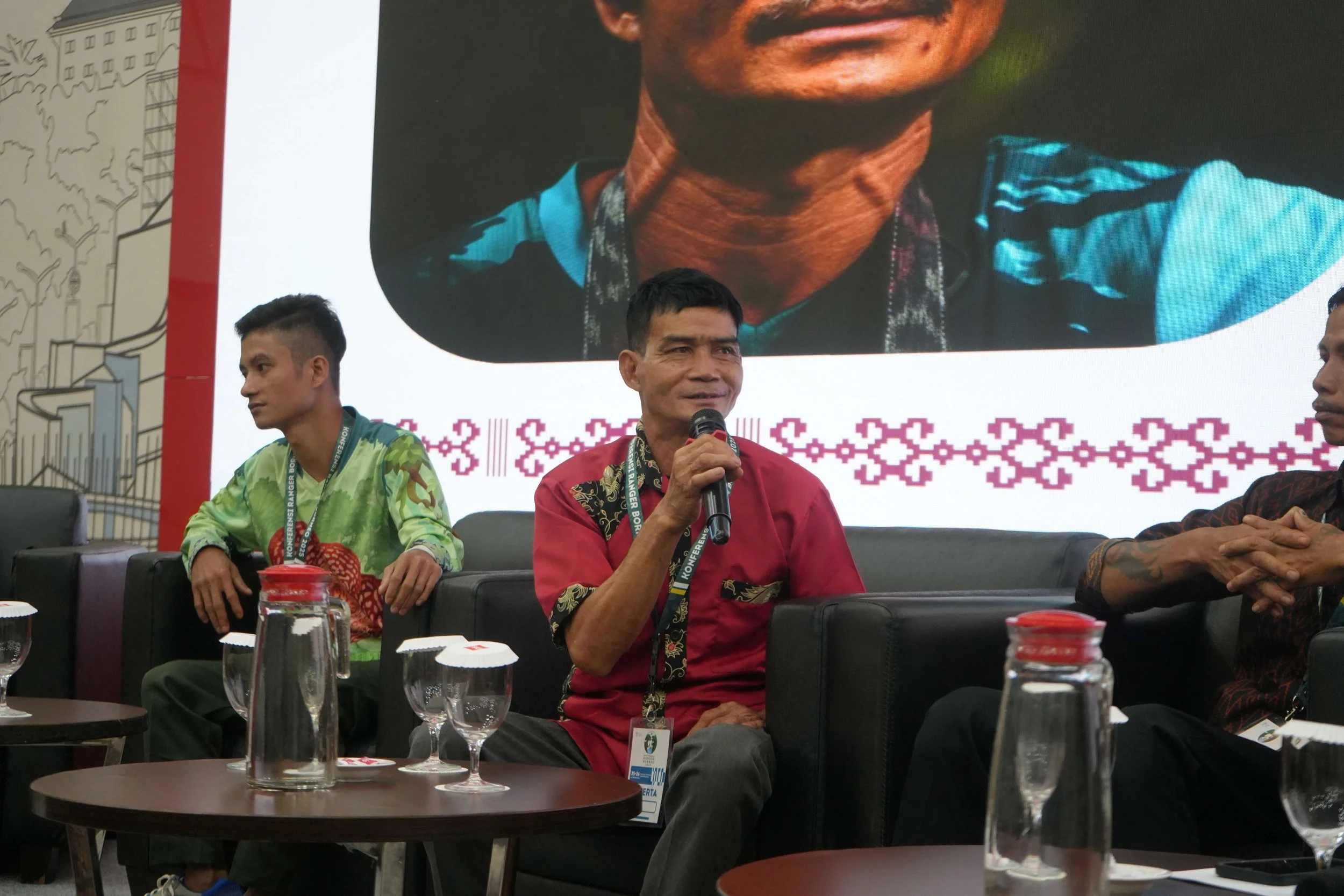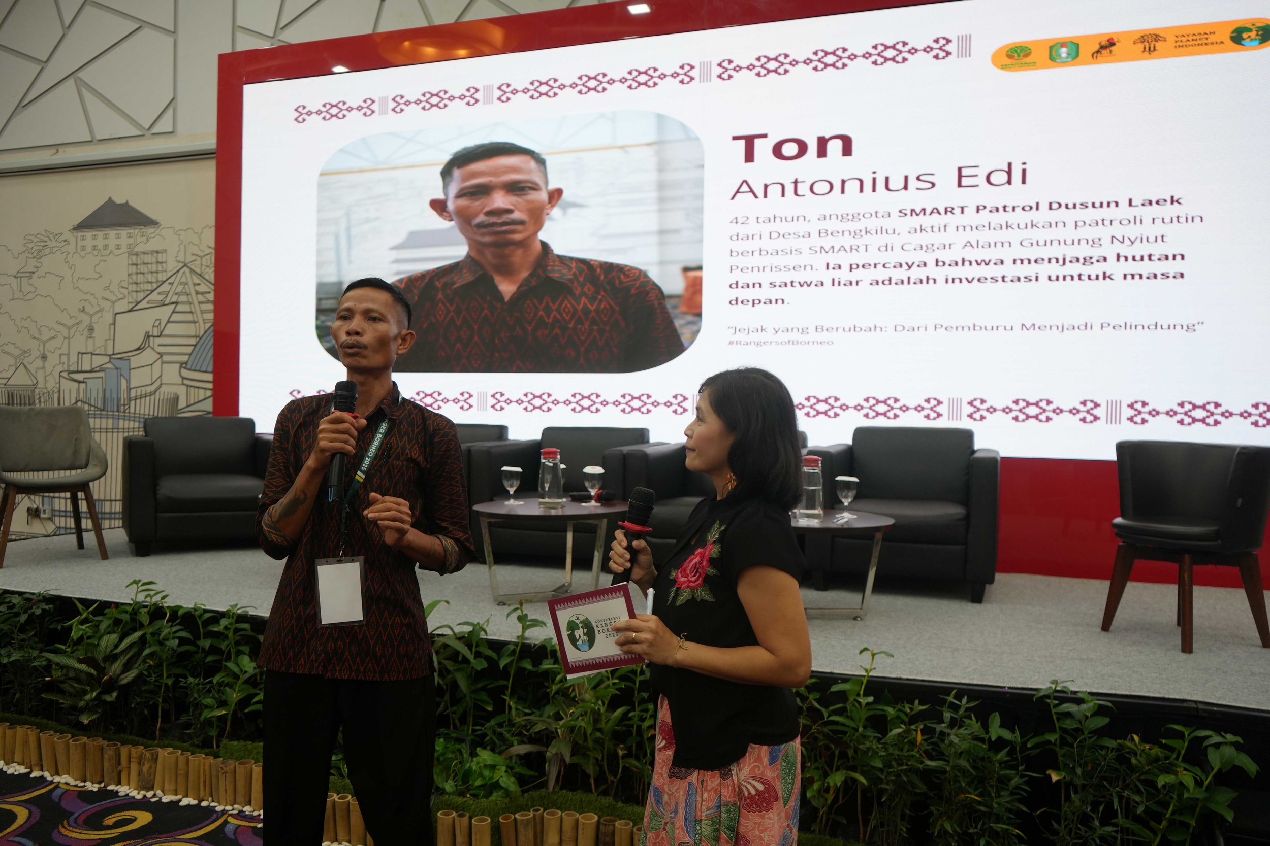 Antonius Edi shares his personal journey during a panel session, reflecting on his transition from hunter to community ranger.