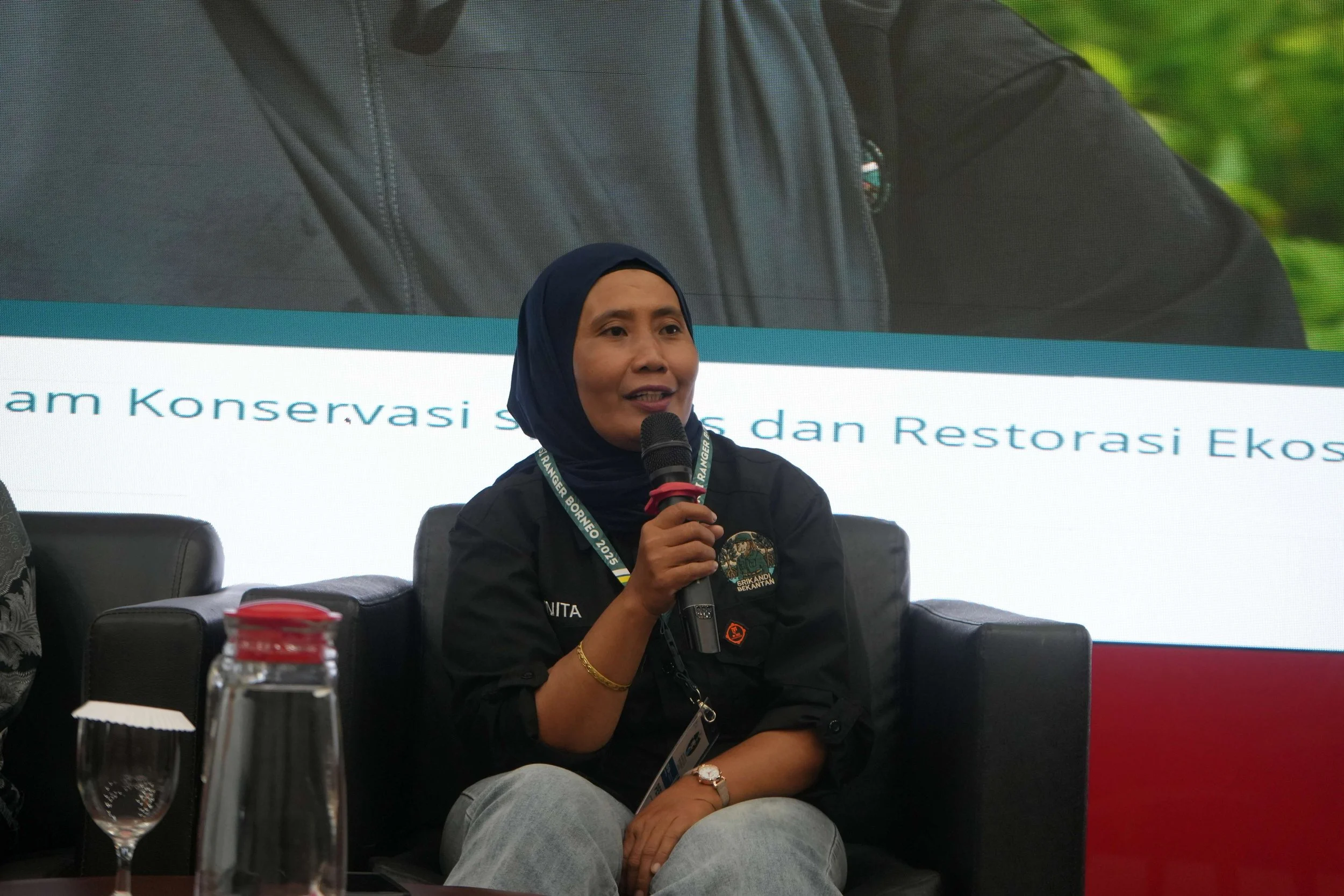 Yunita, head of the Srikandi Bekantan Patrol Team in Kubu Raya, speaks about women-led monitoring of proboscis monkey habitats following the team’s establishment in July 2025.