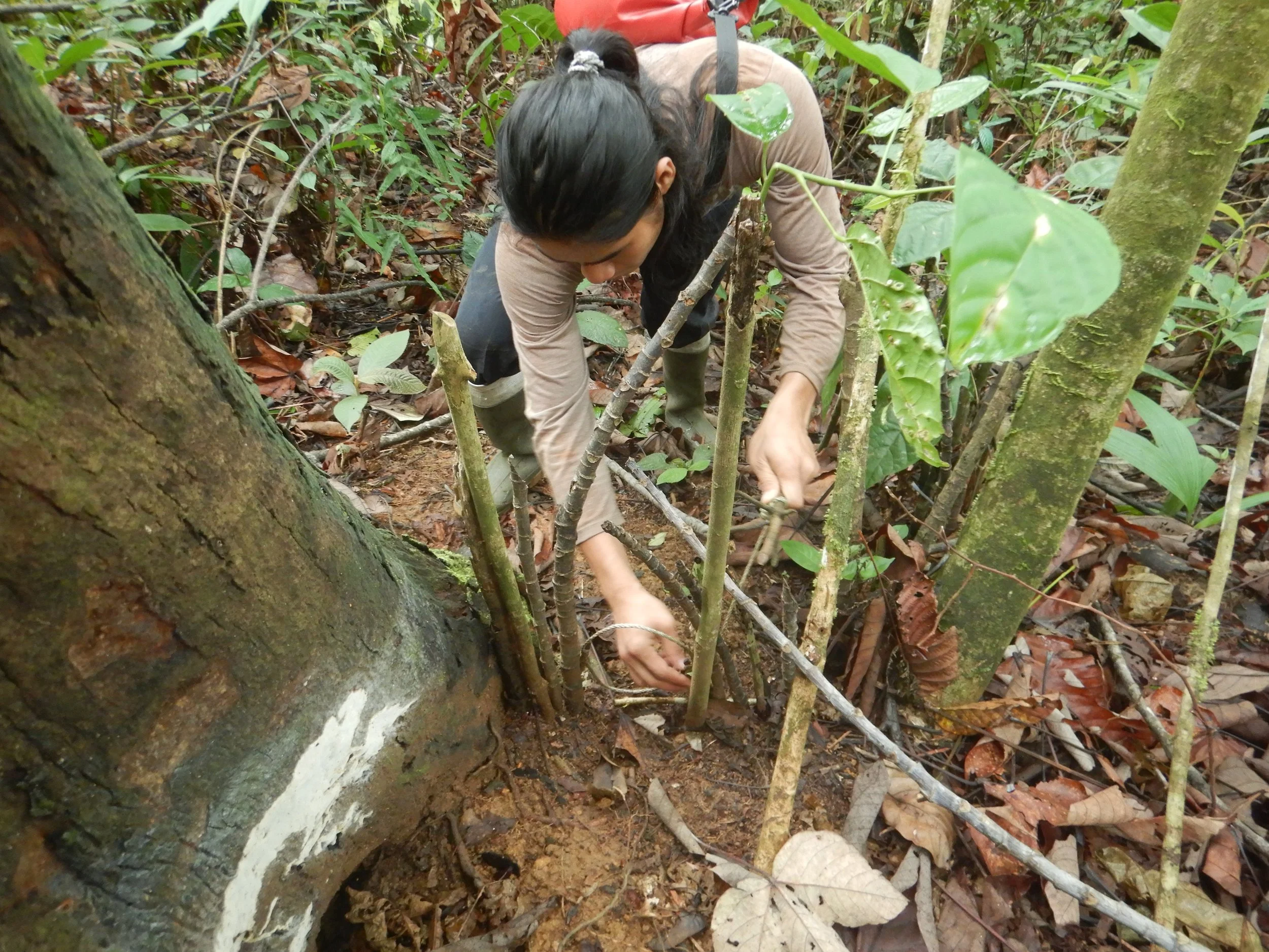 Community patrol member in Gunung Nyiut removing a snare
